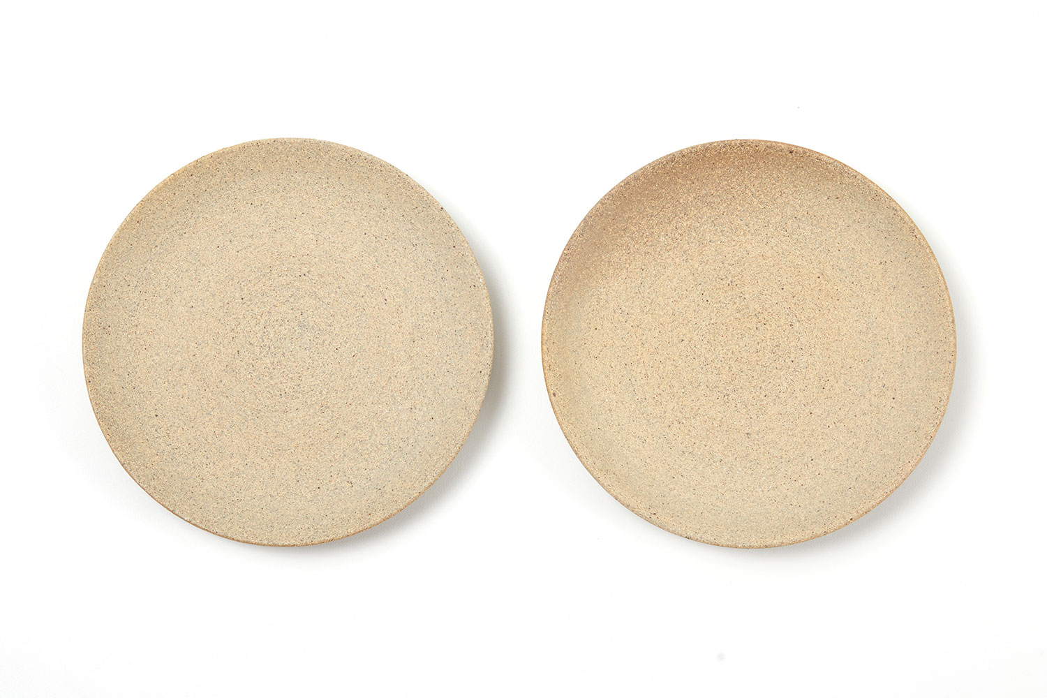 Conjunto com 2 Pires Jumbo redondos sem acabamento vidrado.